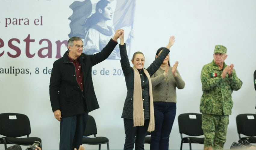La presidenta de México afirmó que «el pueblo de Tamaulipas es mucha pieza» y también hizo un reconocimiento al gobernador Américo Villarreal.